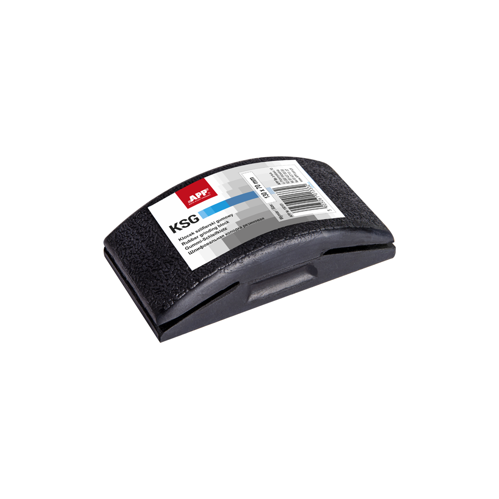 Blocco in gomma elastica con carta abrasiva fissata tramite speciali morsetti. Utilizzato per levigatura sia a secco che con acqua. La sua flessibilità permette di adattarsi facilmente ai contorni dell'oggetto lavorato, rendendolo utile in diverse applicazioni di lavorazione dei materiali.