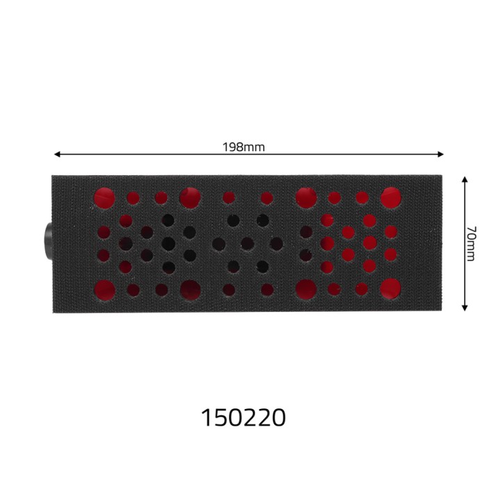 Tampone manuale con aspirazione 70x198mm, realizzato in plastica, progettato per l'estrazione della polvere grazie a un sistema di fessure poste sul platorello in velcro. Offre un'ompugnatura ergonomica e un design leggero che migliora il confort durante l'uso.