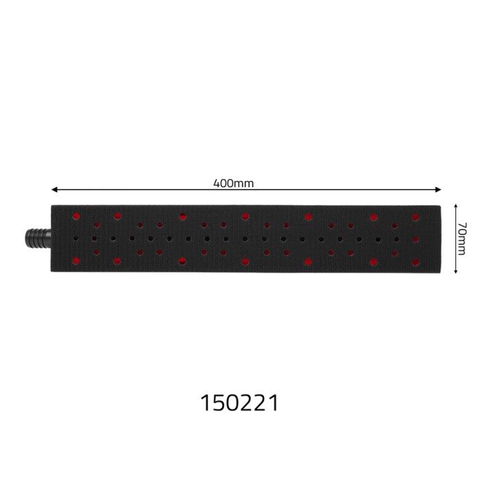 Tampone manuale con aspirazione 70x400mm, realizzato in plastica, progettato per l'estrazione della polvere grazie a un sistema di fessure poste sul platorello in velcro. Offre un'impugnatura ergonomica e un design leggero che migliora il confort durante l'uso.