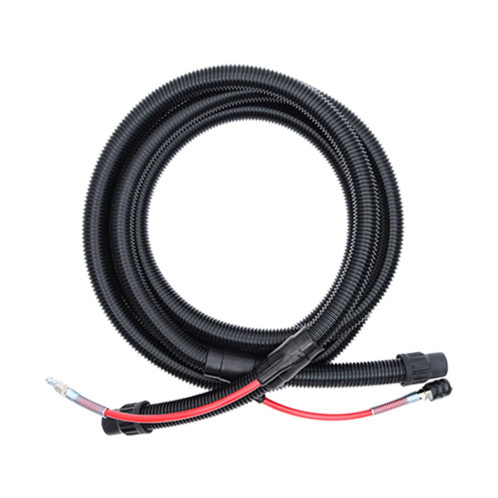 Tubo di aspirazione 2in1 linea pneumatica, lungo 5 m con diametro interno di 29mm e diametro esterno di 35mm, progettato per aspiratori pneumatici NTools VC 50EP e Rupes S130PL, S145EPL, KS260EPNS, S235EP. Dotato di linea d'aria integrata con attacco rapido, beccuccio e terminali in gomma per il collegametno a levigatrici.
