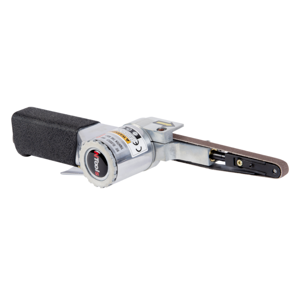 Levigatrice a nastro pneumatica ideale per lavorare in aree difficili da raggiungere. Offre levigatura e lucidatura precise, funzionamento senza vibrazioni, cambio rapido del nastro e bassa rumorosità, garantendo una presa sicura e accesso a zone strette, testa inclinabile e manico ergonomico