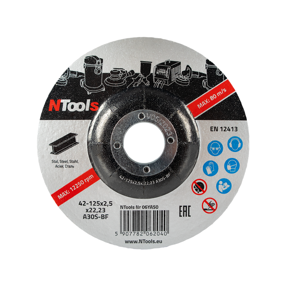 Disco da taglio e smerigliatura per acciaio, dimensioni d115 e d 125mm, forma FEPA42 (centro ribassato), spessore 2,5mm. Garantisce una vasta gamma di applicazioni durante le riparazioni di lattoneria. E' progettato per il taglio di elementi in acciaio con smerigliatrici.