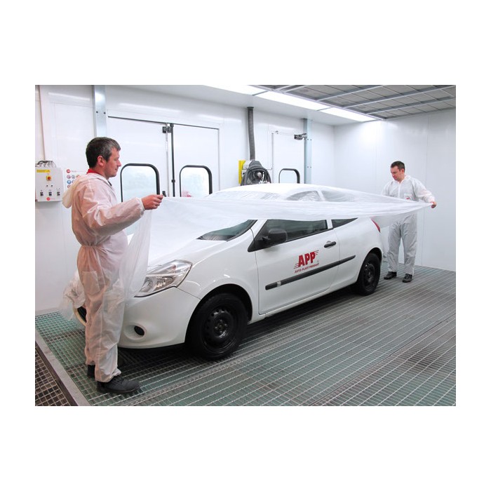 Film per mascherare carrozzeria e vetri durante la verniciatura, spessore 4 micron.Grazie alla disposizione soeciale delle fibre, offre elevata resistenza a trazione, perforazione e rottura. Ideale per proteggere superfici e oggetti da contaminazione durante lavori di verniciatura e preparazione dei supporti.