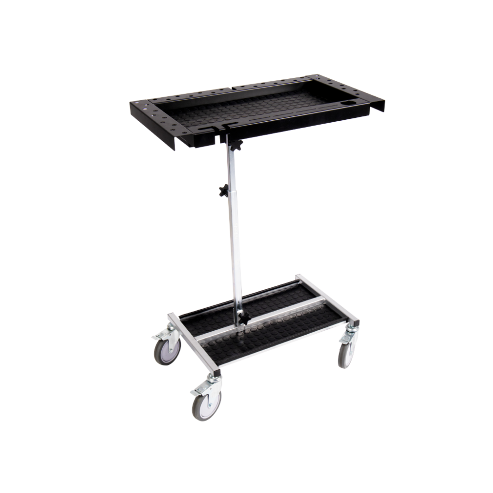Carrello leggero e maneggevole per lo stoccaggio di attrezzi e accessori utilizzati nelle riparazioni PDR. Offre una soluzione mobile per i professionisti del settore, facilitando la movimentazione e l'organizzazione degli strumenti durante i lavori di riparazione della carrozzeria. Realizzato interamente in profili d'acciaio zincato.