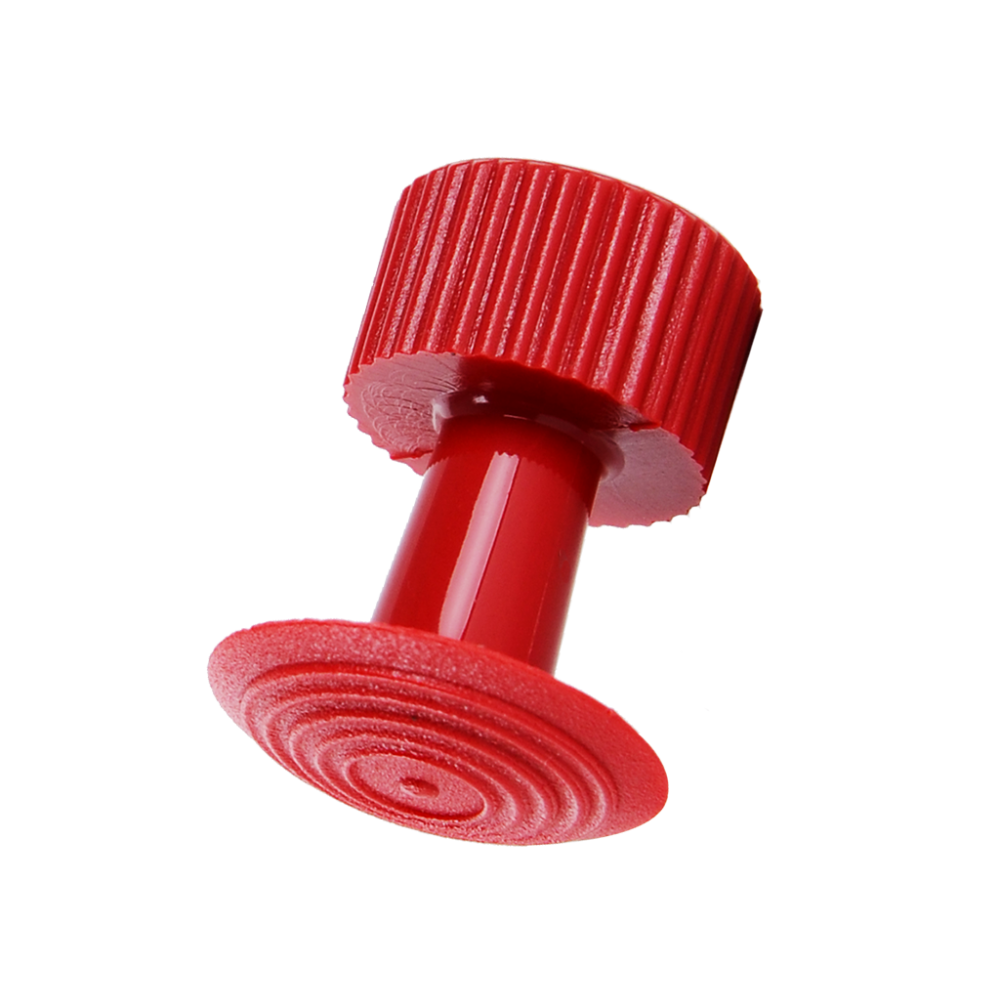 Piasta adesiva rossa rotonda con superficie sferica e diametro di 16mm.