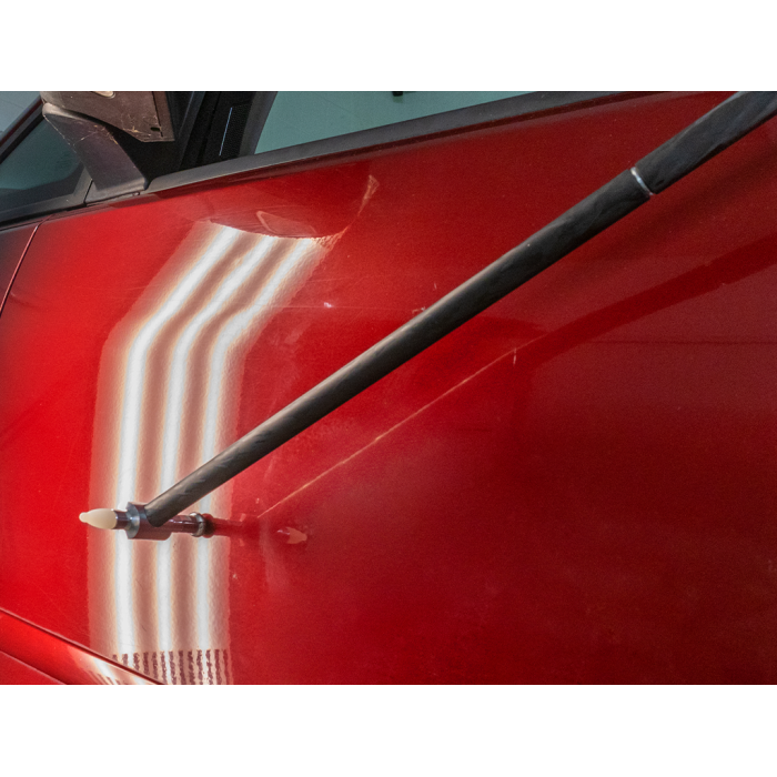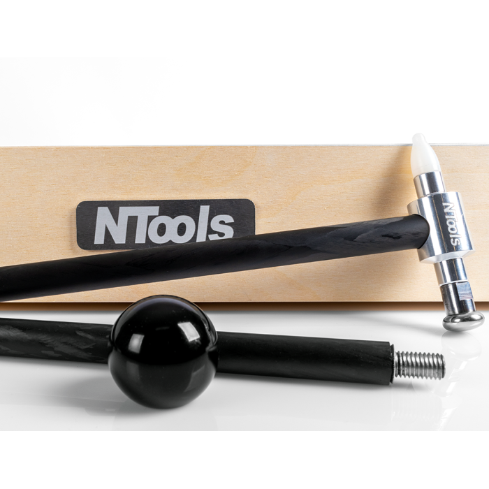 Martello leggero con manico in fibra di carbonio, ideale per eliminare irregolarità della carrozzeria durante le riparazioni PDR. La superficie opaca assicura un'ottima presa, mentre la testa in alluminio con fori filettati consente il montaggio di accessori dedicati.