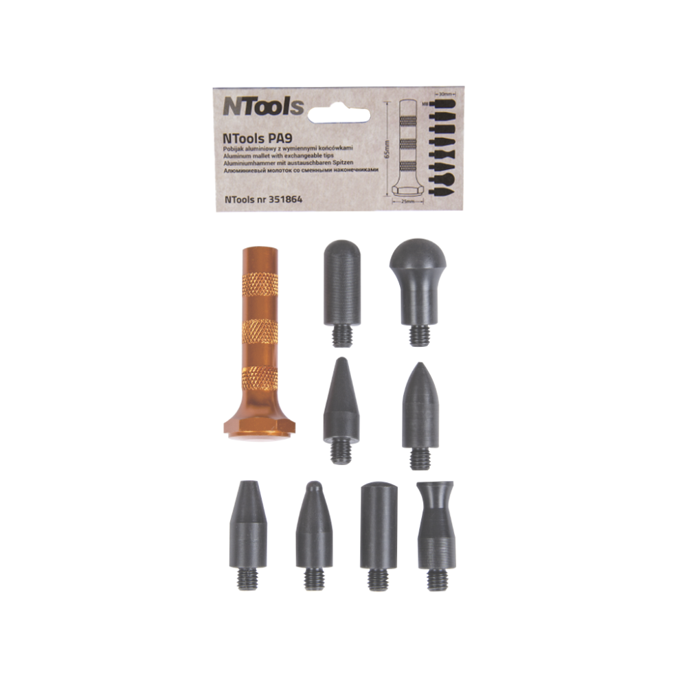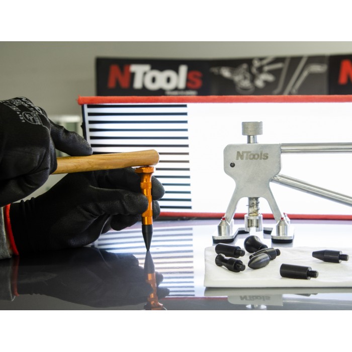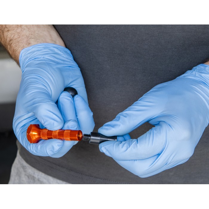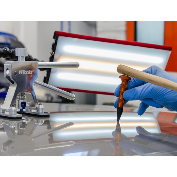 Strumento in alluminio per la rimozione delle ammaccature con punte intercambiabili in nylon, ideale per riparazioni senza verniciatura con sistema PDR. Il design ergonomico a superficie zigrinata. Le diverse punte disponibili permettono di riparare quasi tutte le irregolarità della carrozzeria.