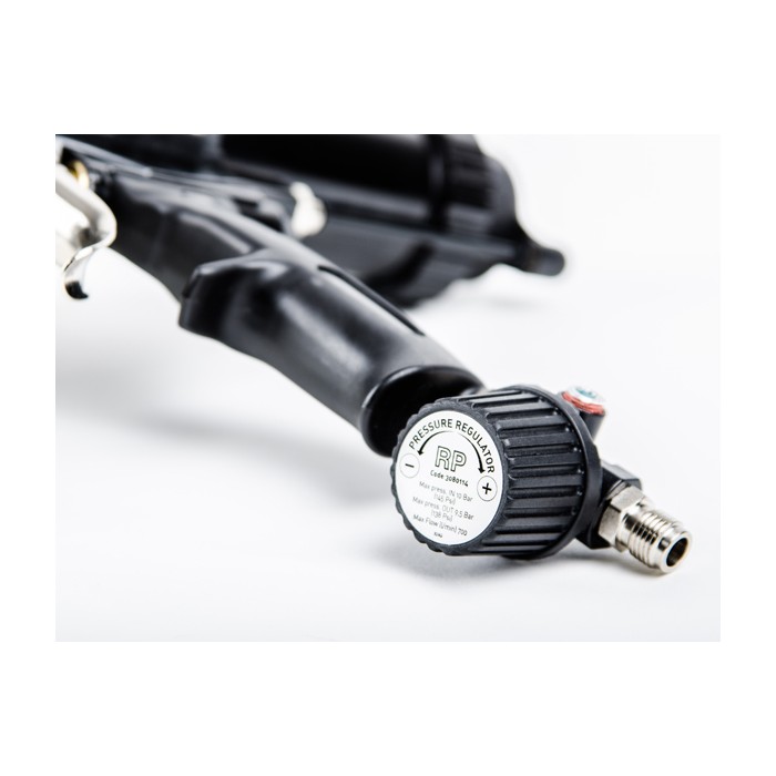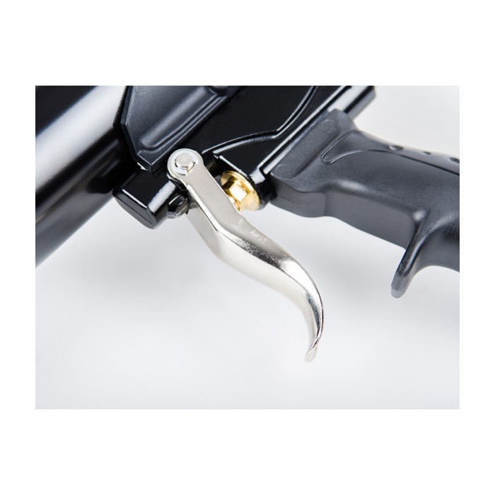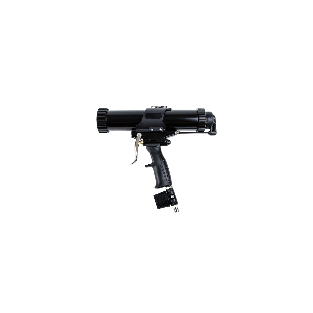 Pistola pneumatia per cartucce da 290ml, 310 ml e sacchetti da 400ml. Con valvola di riduzione della pressione di alimentazione e regolazione della velocità di applicazione. Il rilascio del grilletto interrompe immediatamente l'erogazione del materiale.