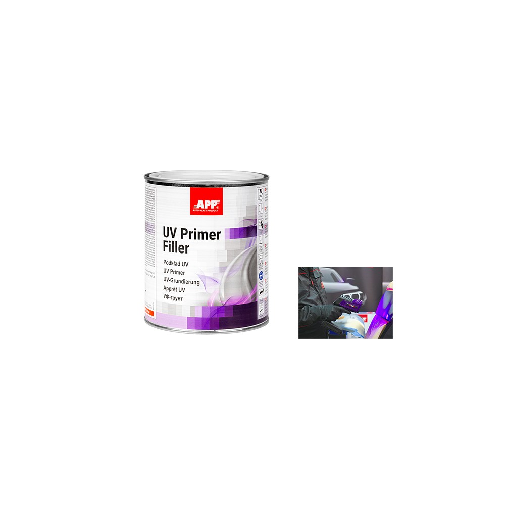 APP Primer Filler è un primer monocomponente a rapida essiccazione, polimerizzato UV, progettato per riparazioni di piccole e medie dimensioni, ad esempio riparazioni SPOT/SMART. Riduce significativamente i tempi di essiccazione e riparazione. Ha un'eccellente adesione a tutti i tipi di metallo, stucchi poliestere e vecchie vernici. È progettato per le classiche applicazioni di carteggiatura. Il prodotto è pronto all'uso.
