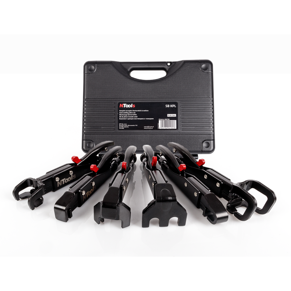 Un set di pinze per lamiera in una custodia NTools SZ KPL è destinato ai servizi di lamiera, saldatura e industria. Sono adatti a lavorare in spazi limitati, consentono il bloccaggio permanente e l'adattamento preciso degli elementi uniti della carrozzeria durante la lavorazione della lamiera.