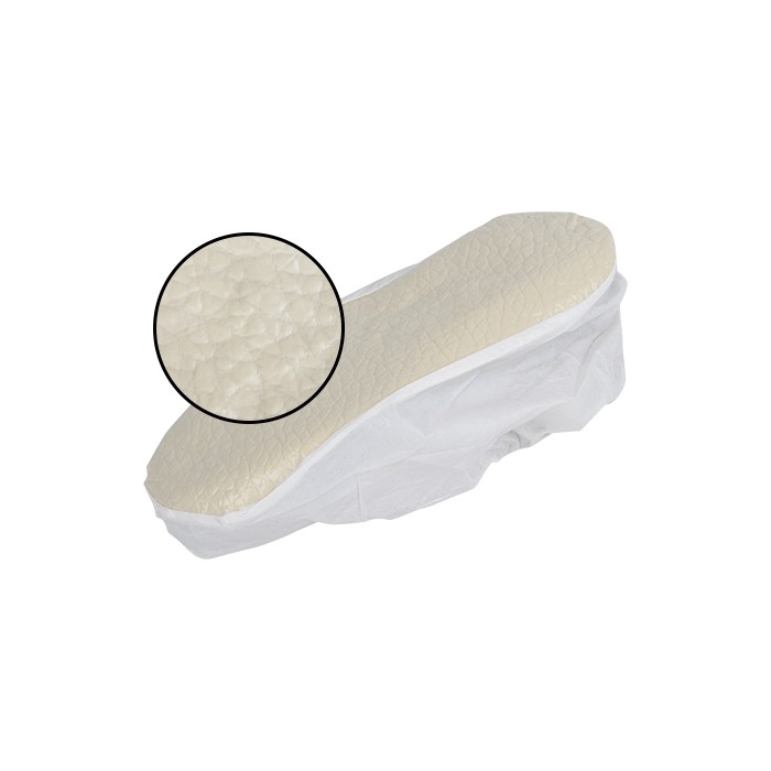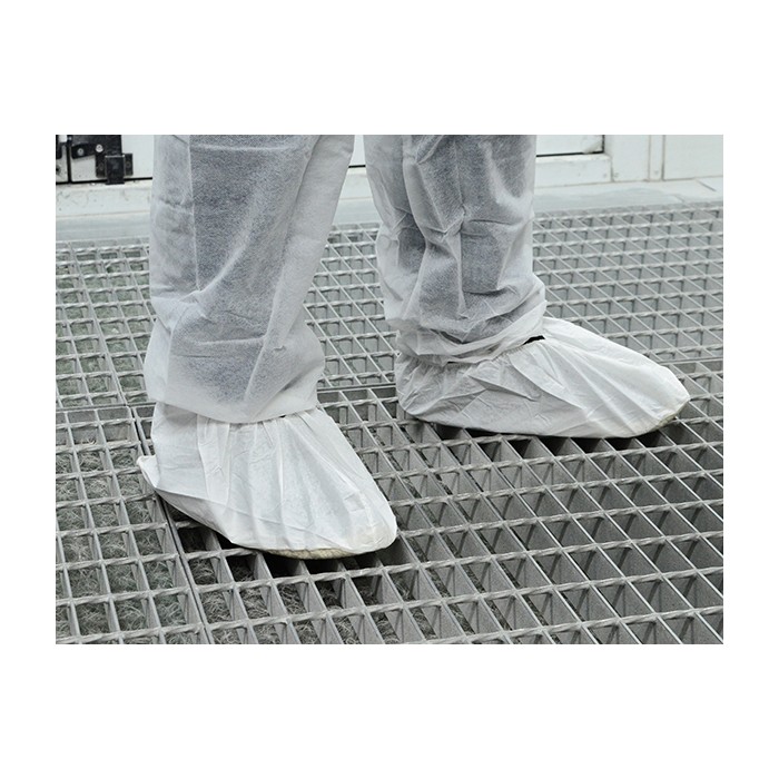 Copriscarpe monouso realizzati in robusto tessuto microporoso privo di pelucchi, che protegge dal contatto con polveri e liquidi (protezione di tipo 5 e6). Dotati di suola antiscivolo resistente ai danni e parte superiore elastica che facilita l'indossamento e garantisce una vestibilità aderente.