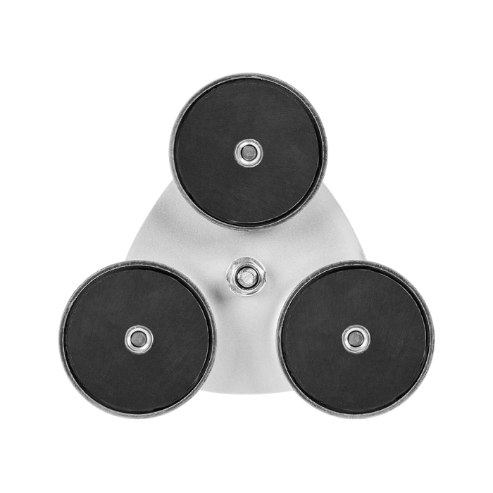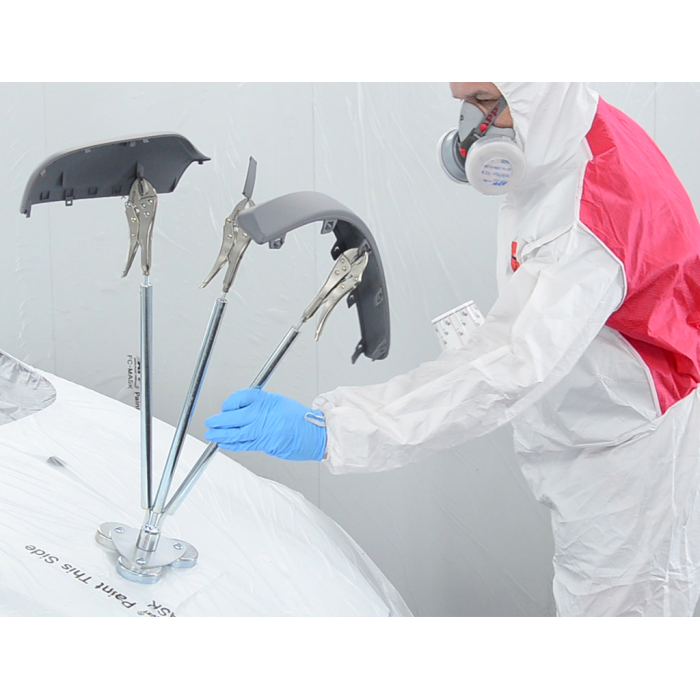 Supporto magnetico leggero con 3 ganci progettato per la verniciatura di piccoli componenti della carrozzeria, come calotte specchietti, modanature, maniglie e tappi.