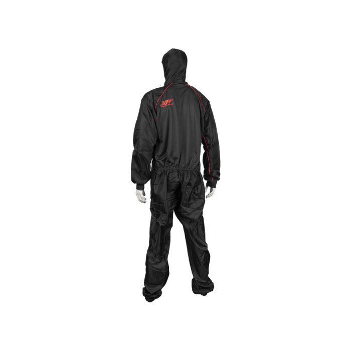Tuta antistatica in poliestere Cat.I, leggera e resistente, riutilizzabile, dotata di cappuccio. La vestibilità e la tenuta sono garantite da elastici in vita, nel cappuccio, alle caviglie e ai polsi. Protegge gli indumenti da vernice, polvere e cantaminazioni da aerosol.